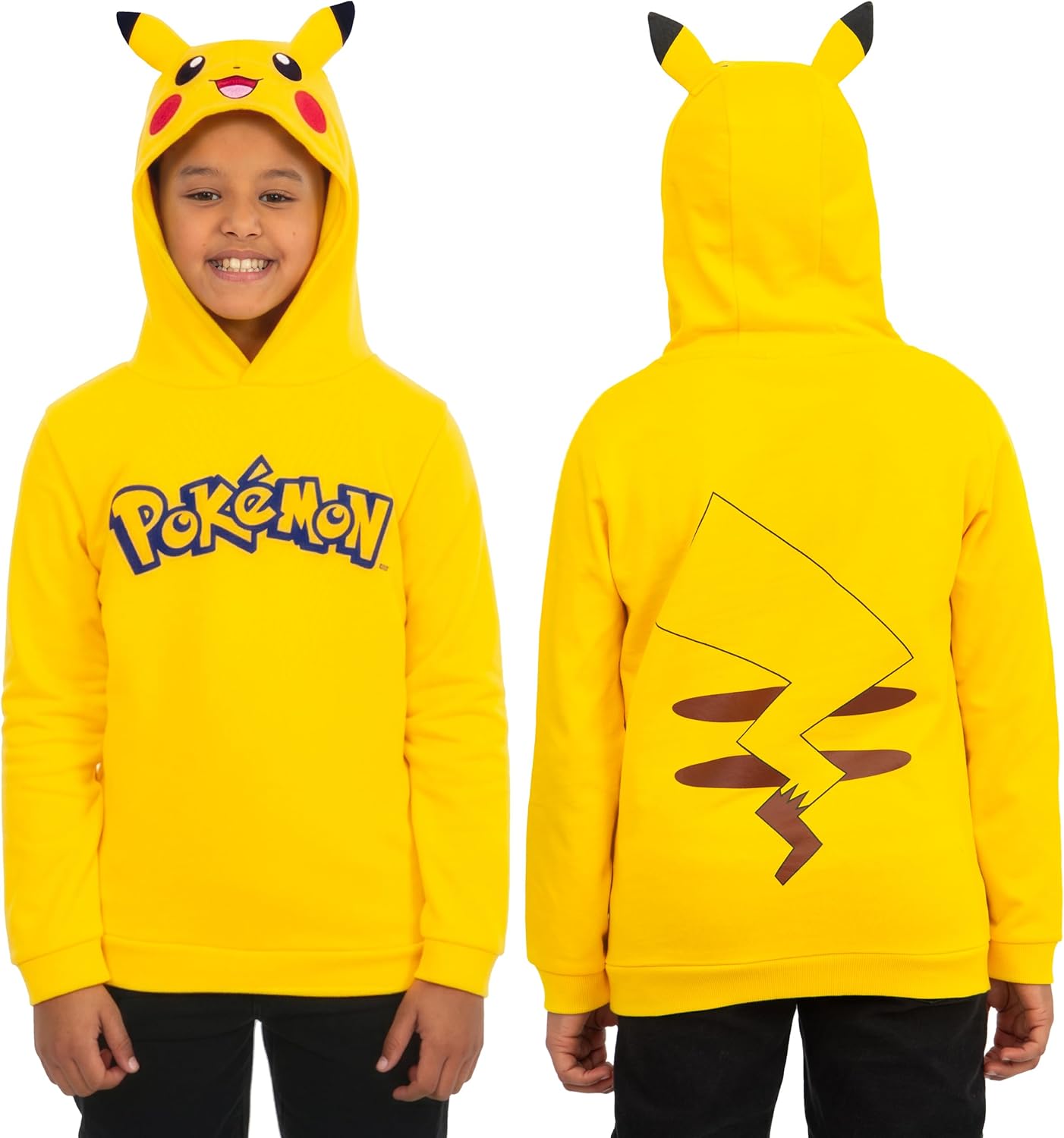 • Iconic Pikachu Design: This Pokemon hoodie is styled to look just like the Pokémon Pikachu, complete with 3D ears and an embroidered face on the hood, making it the ultimate Pikachu hoodie for young fans